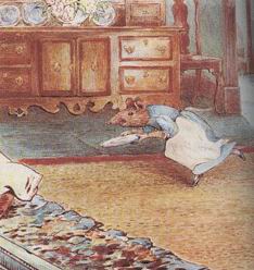 “是的,那些耗子都泛滥成灾了,”塔比瑟泪如雨下地说,“上个星期六,我从厨房后面的一个洞里抓住了七只小的,用他们做了晚餐。还有一次我看见了他们的老爸爸——一只又老又凶的大耗子。瑞比表姐,他竟然对我龇出他的大黄牙,我朝他扑过去的时候,他已经飞快地钻进了洞里。