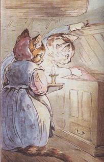 现在,让我们看看汤姆小猫究竟出了什么事吧,它会告诉你在一座老房子里爬烟囱是多么轻率无知的举动,因为在那里看不见前面的路,还有一些巨大的耗子在等着你。