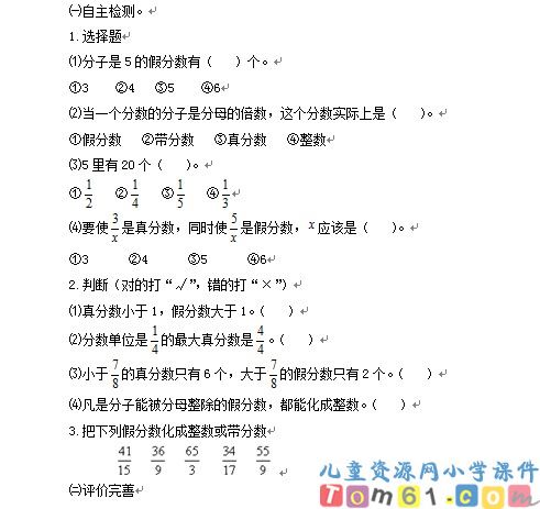 更多真分数和假分数相关资源