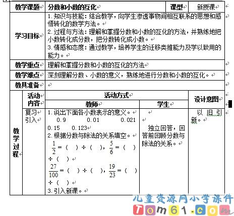 分数和小数的互化教案5