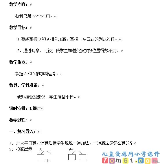 8和9的加减法教案2