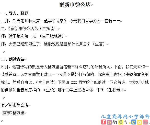 宿新市徐公店教案1