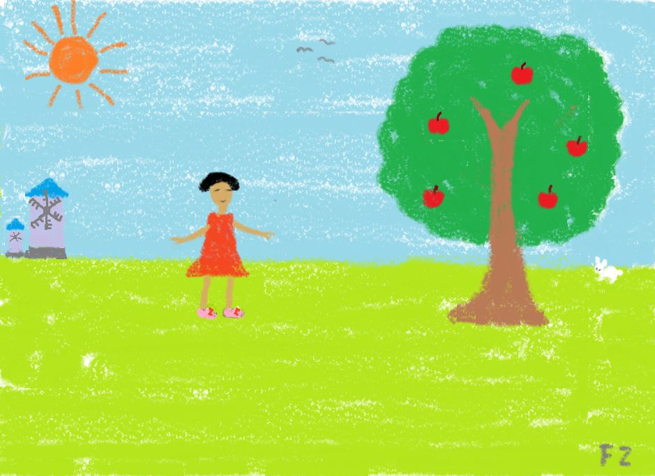苹果树-蜡笔画图集