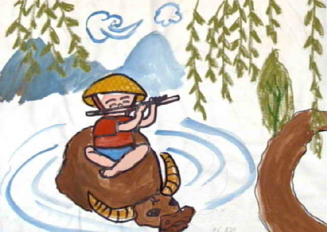 > 牛-蜡笔画图集