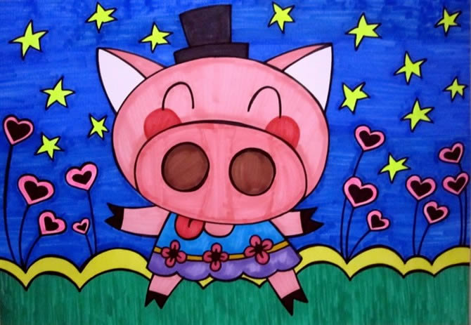> 猪-水彩画图集