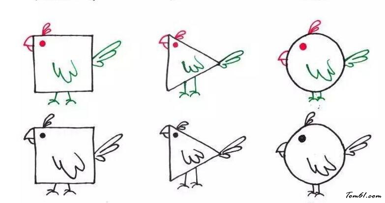 > 正方形、圆形、三角形的小鸟